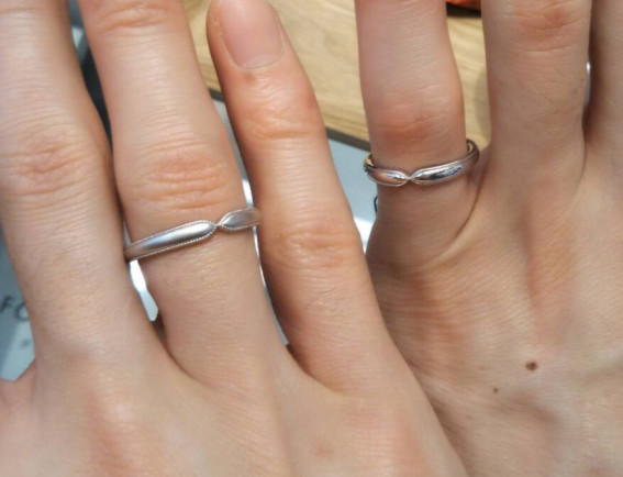 お店の方2人も彼も、プラチナのほうが上品だし、絶対キレイだよ!と言うことで