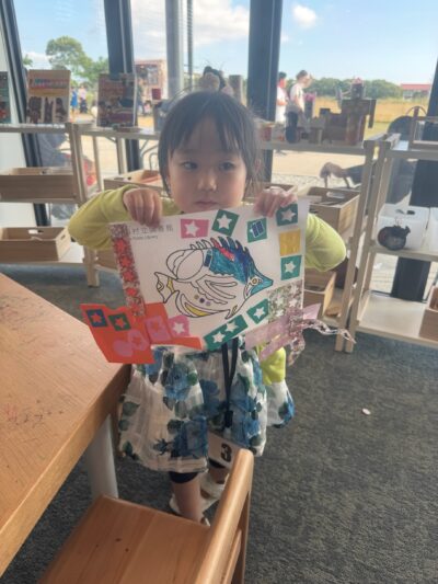 お絵描きとか、工作できるコーナーありました!