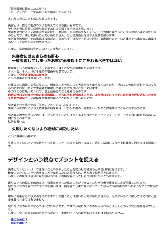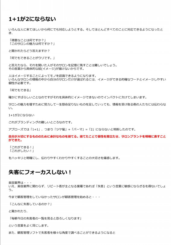 渡部さんの考えも交えながら、サロンブランディングについて書き記してあります。